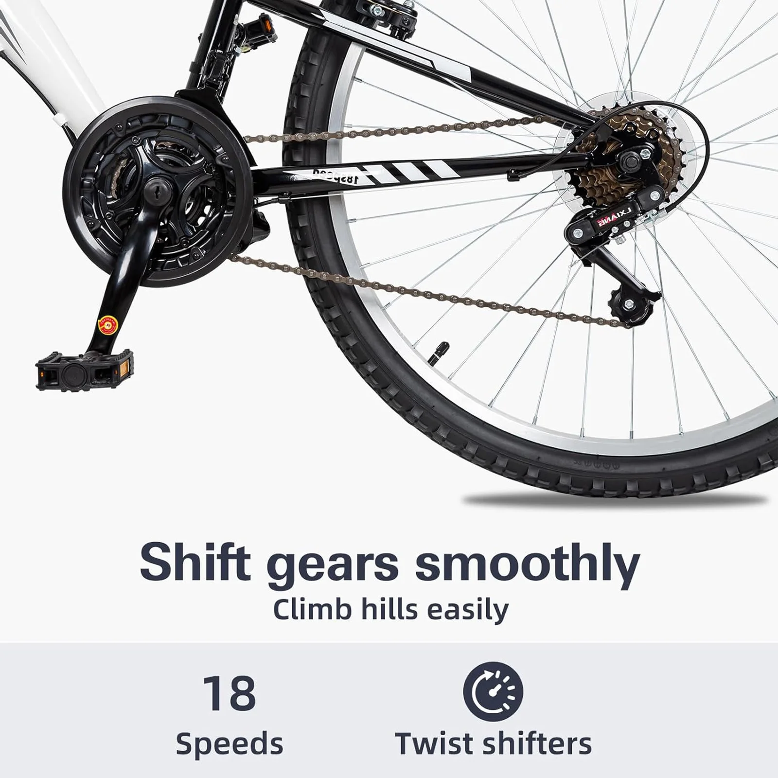 - Durable & Safe: Equipped with a safe chain guard, anti-slip tires for all-terrain grip, and an adjustable saddle for comfort. Perfect for family outings and backed by a 1-year warranty.